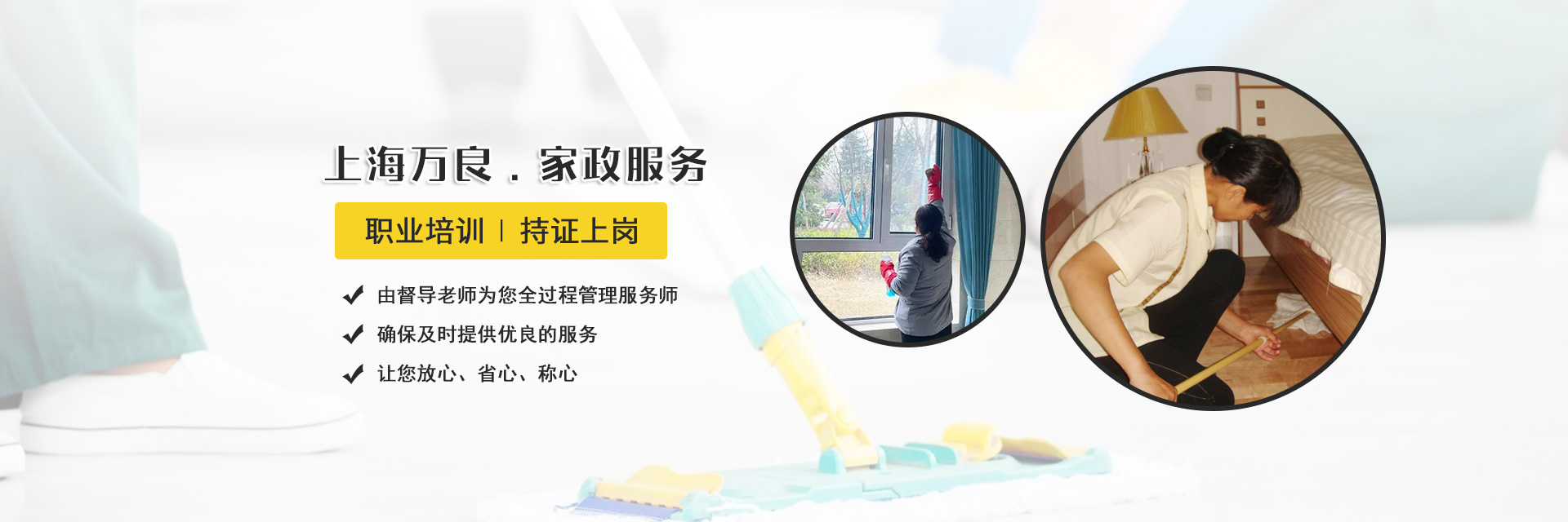 上海万良家政服务有限公司是一家有着十几年家政服务史的经营业绩,聘用的家政从业人员经严格的挑选和系统的职业培训持证上岗,为本地区的广大客户提供了大量的家政服务人才,得到了广泛好评,以本地家政服务人员为主体,信誉好,确保为客户提供放心、专业的家政服务。